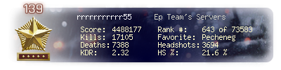 | Kills | 17105 | Deaths | 7388 | Kill / Death | 2.32 |