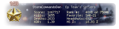 | Headshots | 692 | Suicides | 28 | Headshot / Kill | 18.93 % |