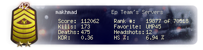 | Kills | 173 | Deaths | 475 | Kill / Death | 0.36 |