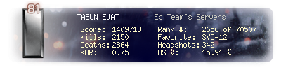 | Kills | 2150 | Deaths | 2864 | Kill / Death | 0.75 |