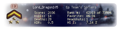 | Kill-streak | 3 | Death-streak | 7 | Team Kills | 0 |