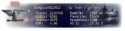 | Headshots | 1244 | Suicides | 167 | Headshot / Kill | 19.93 % |