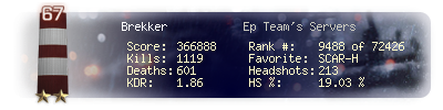 | Kills | 1119 | Deaths | 601 | Kill / Death | 1.86 |