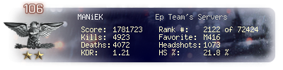 | Kill-streak | 8 | Death-streak | 9 | Team Kills | 0 |