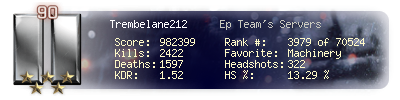 | Kills | 2422 | Deaths | 1597 | Kill / Death | 1.52 |