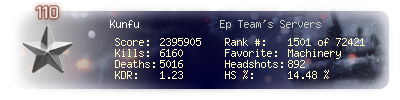 | Headshots | 892 | Suicides | 69 | Headshot / Kill | 14.48 % |