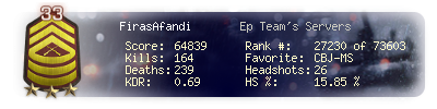 | Headshots | 26 | Suicides | 1 | Headshot / Kill | 15.85 % |