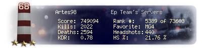 | Kills | 2022 | Deaths | 2594 | Kill / Death | 0.78 |