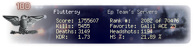 | Kills | 5455 | Deaths | 3149 | Kill / Death | 1.73 |