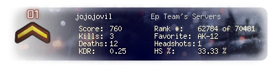 | Kill-streak | 2 | Death-streak | 8 | Team Kills | 0 |
