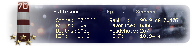 | Headshots | 207 | Suicides | 8 | Headshot / Kill | 18.94 % |