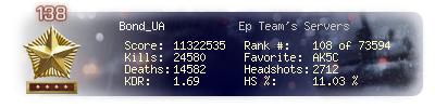 | Headshots | 2712 | Suicides | 141 | Headshot / Kill | 11.03 % |