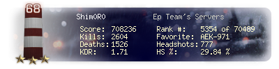 | Kills | 2604 | Deaths | 1526 | Kill / Death | 1.71 |