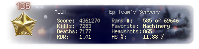 | Kills | 5965 | Deaths | 5640 | Kill / Death | 1.06 |
