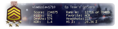 | Headshots | 227 | Suicides | 4 | Headshot / Kill | 28.34 % |