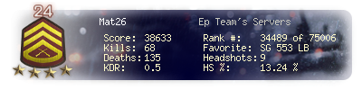 | Kill-streak | 4 | Death-streak | 17 | Team Kills | 0 |
