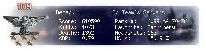 | Kills | 1073 | Deaths | 1352 | Kill / Death | 0.79 |