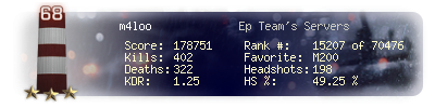 | Headshots | 200 | Suicides | 4 | Headshot / Kill | 44.74 % |