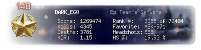 | Kills | 4345 | Deaths | 3781 | Kill / Death | 1.15 |