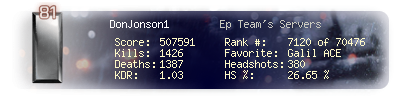 | Kills | 1426 | Deaths | 1387 | Kill / Death | 1.03 |