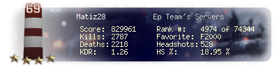 | Headshots | 528 | Suicides | 23 | Headshot / Kill | 18.95 % |