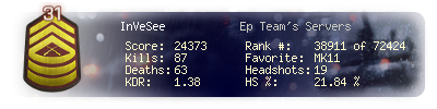 | Headshots | 19 | Suicides | 0 | Headshot / Kill | 21.84 % |