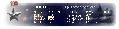 | Headshots | 884 | Suicides | 22 | Headshot / Kill | 17.22 % |