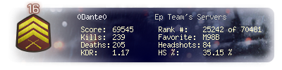 | Kills | 239 | Deaths | 205 | Kill / Death | 1.17 |