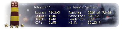| Headshots | 133 | Suicides | 5 | Headshot / Kill | 16.42 % |