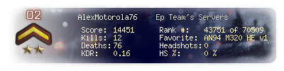 | Kills | 12 | Deaths | 76 | Kill / Death | 0.16 |