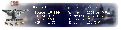 | Kill-streak | 36 | Death-streak | 11 | Team Kills | 1 |