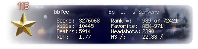 | Headshots | 168 | Suicides | 5 | Headshot / Kill | 24.85 % |