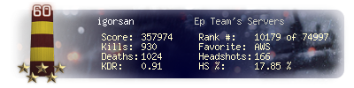 | Headshots | 166 | Suicides | 23 | Headshot / Kill | 17.85 % |