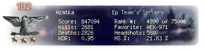 | Kills | 2681 | Deaths | 2826 | Kill / Death | 0.95 |