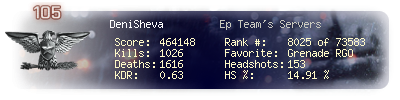 | Kill-streak | 8 | Death-streak | 29 | Team Kills | 2 |