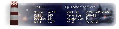 | Kills | 145 | Deaths | 184 | Kill / Death | 0.79 |