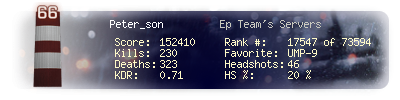 | Kills | 230 | Deaths | 323 | Kill / Death | 0.71 |