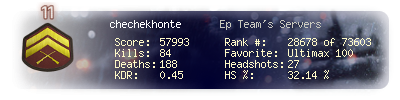 | Kill-streak | 6 | Death-streak | 15 | Team Kills | 0 |