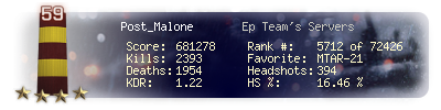 | Headshots | 394 | Suicides | 33 | Headshot / Kill | 16.46 % |