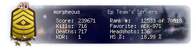 | Headshots | 26 | Suicides | 1 | Headshot / Kill | 13.4 % |