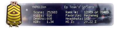 | Kills | 816 | Deaths | 608 | Kill / Death | 1.34 |