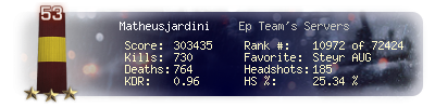 | Kills | 730 | Deaths | 764 | Kill / Death | 0.96 |