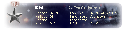 | Kill-streak | 4 | Death-streak | 11 | Team Kills | 0 |