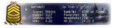 | Kills | 1127 | Deaths | 1827 | Kill / Death | 0.62 |