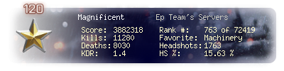 | Kills | 8395 | Deaths | 5702 | Kill / Death | 1.47 |