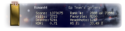 | Headshots | 1247 | Suicides | 32 | Headshot / Kill | 33.49 % |