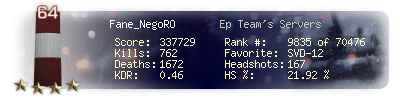 | Kills | 762 | Deaths | 1672 | Kill / Death | 0.46 |