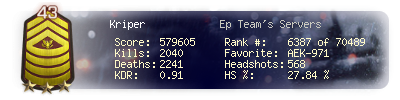 | Kills | 2040 | Deaths | 2241 | Kill / Death | 0.91 |