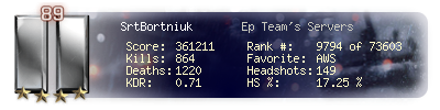 | Kill-streak | 4 | Death-streak | 9 | Team Kills | 0 |