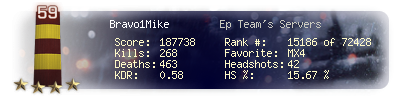 | Kills | 268 | Deaths | 463 | Kill / Death | 0.58 |